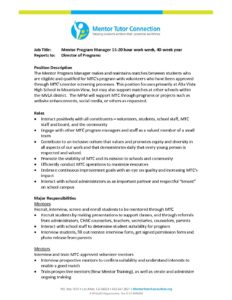 MPM job description Jan 2022